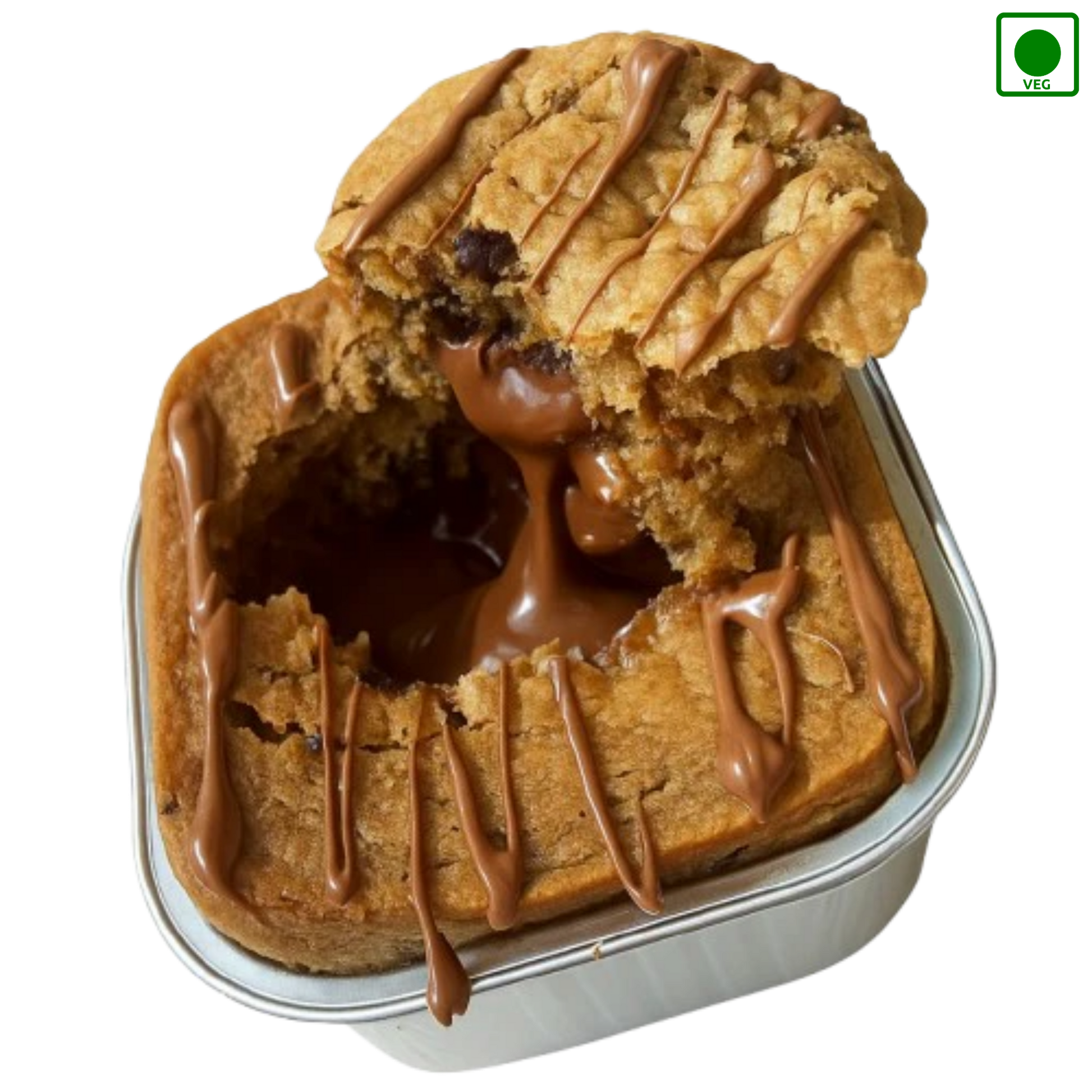 Brown-butter cookie dough with molten chocolate centre. Soft edges, gooey heart. Pure chocolate lava indulgence.